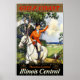 Afiche de viajes por ferrocarril para los servicios Panamá Limited de Illinois Central a la costa del Golfo de Misisipi.