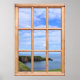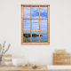 El océano tranquilo se asemeja a la seda azul en esta vista del mar que se ve a través de una ventana. El poster fotográfico muestra una escena costera en Escocia, donde un promontorio se asoma al mar. En primer plano se ve un acantilado de hierba, con el cielo azul de verano adornado con nubes de blanco. Un entorno de costa relajante que da un toque tranquilo a una habitación.