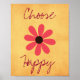 Cita motivacional Elegir Poster feliz. El fondo crema naranja con una flor de inspiración retro y las inspiradoras palabras motivacionales, "Choose Happy"—todo se trata de la actitud en la vida!