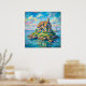 Artwork of a lone cottage on an island in the middle of the sea. This artwork captures a cozy stone cottage perched on a tiny, flower-filled island in the middle of a sparkling blue sea. From the smoke gently curling from the chimney to the rustic wooden dock and the waiting rowboat; The scene is alive with color. Vibrant turquoise waters, a sky painted with fluffy clouds, and a garden bursting with wildflowers. In the distance, a lighthouse stands sentinel, adding a touch of nautical romance. Perfect for anyone who dreams of a quiet life by the ocean or loves fairy tales. This artwork blends a traditional coastal theme with a playful, illustrative style.