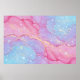 Diseño de tinta alcohólica abstracta de ensueño con olas de tonos rosas, púrpura y azul con una vena de oro delicada y burbujas dispersas. Esta obra de arte etérea evoca el suave y caprichoso sentimiento de las nubes de los caramelos de algodón y los cielos mágicos, perfecto para añadir un toque de asombro.