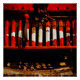 Costero de vaca, guardabarros o red de seguridad de un tren de vapor vintage. Fotografía texturizada. Colores rojos y marrones.