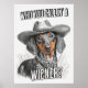 ¡Ensillar para la risa! Nuestro poster divertidísimo Cowboy Dachshund cuenta con un adorable perro engullidor con un pequeño gorra, bandana y una cara irresistible. Trae brillo y encanto a cualquier espacio. Hay una frase graciosa: "¿A quién llamas wiener?". Perfecto para los amantes del perro y para los amantes de la amabilidad. ¡Ordenen ahora y dejen que empiece la alegría! ¡Sí!