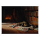Póster Cozy Fireplace Cat Library Scene