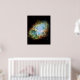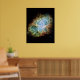 Recommended size to fit a standard frame: 16x20 inches (original size: 12x18 inches at 300 PPI, 19 MP). Many other sizes available. Click 'Customize it!' on the right. This is the mess that is left when a star explodes. The Crab Nebula, the result of a supernova seen in 1054 AD, is filled with mysterious filaments. The filaments are not only tremendously complex, but appear to have less mass than expelled in the original supernova and a higher speed than expected from a free explosion. The above image, taken by the Hubble Space Telescope, is presented in three colors chosen for scientific interest. The Crab Nebula spans about 10 light-years. In the nebula's very center lies a pulsar: a neutron star as massive as the Sun but with only the size of a small town. The Crab Pulsar rotates about 30 times each second.
