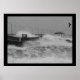 El fotógrafo Jon Sullivan capturó esta poderosa toma de las olas del huracán que azotaron un puente y un café. Esta fotografía que provoca miedo en blanco y negro expresa la fuerza eterna del mar durante esta severa tormenta climática y crea una sensación de destino incierto.