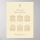 Cream Beige 6 Table Baptism Seating Chart Poster, por favor, personalice el nombre de la persona que está bautizando y los nombres de los invitados junto con cualquier otro texto que desee personalizar. Un poster con un bonito gráfico de asientos con un texto elegante en un tono dorado de beige sobre un fondo crema (la previsualización de la imagen "Corner" muestra un acercamiento simulado).