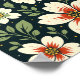 The design features a repeating floral pattern illustrated in a hand-drawn style. Large cream-colored flowers appear with wide rounded petals and bold starburst centers in warm red and orange tones. The flower centers are detailed with small circular shapes in golden yellow, giving a lively and textured look. Surrounding the flowers are flowing green leaves and thin stems in soft olive shades, adding balance and movement. Small simple blossoms and scattered dots in yellow, white, and light orange add decorative detail and rhythm to the composition. The background is a deep dark green, which enhances the contrast and makes the floral elements stand out clearly. The overall color palette feels warm, natural, and harmonious, with a vintage-inspired illustration feel.