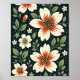 Póster Cream Flowers with Red Centers & Green Leaves