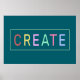 La palabra Crear en letras de colores pastel con un sencillo estilo minimalista.
