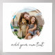 Create your own custom photo poster. This print features one of your favorite pictures in a circle shaped watercolor brush stroke frame and personalized text for any occasion. A great gift for family and friends or your own photo memory keepsake.