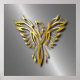 Rising Golden Phoenix Gold Flames con sombras sobre fondo de plata oscura. Puede personalizarlo con su nombre o dejarlo en blanco