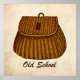 Diseño de pesca clásico con creel vintage. El texto dice ESCUELA ANTIGUA. Antecedentes de papel. Seguro que engancha a tu pescador favorito. Personalízalo con tu propio mensaje personalizado. ¡PinkInkArt original!
