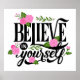 Creer en usted mismo Poster floral Sus paredes son un reflejo de su personalidad, así que déjenlos hablar con sus citas favoritas, arte o diseños impresos en nuestros posters personalizados! Elija entre hasta 5 tipos de papel únicos y de alta calidad para satisfacer sus necesidades creativas o empresariales. Todas son excelentes opciones que cuentan con una superficie lisa y sin ácidos con una impresión de color vibrante. Examine los posters de tamaño estándar o personalizado y las opciones de encuadernación para crear arte que sea una representación perfecta de usted.
