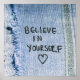 Créanse en sí mismos Motivación de Denim Azul Esto es adorable apariencia de denim azul descolorido con escritura negra. Igual que cuando estabas en la escuela en los 90. Se lee CREER EN TI mismo con un lindo corazón. Esto es lindo, motivacional y inspirador. Esto es encantador.