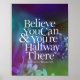 Cita motivacional : Cree que puede y está a medio camino ~ Theodore Roosevelt. Este inspirador lienzo y poster de citas es genial como auto motivador, o como un regalo para amigos y familia, para que se inspiren todos los días pues se ven como la cita. También es una gran herramienta de motivación para inspirar a tu equipo en el lugar de trabajo para que se esfuerce por la excelencia. La cita aparece en un texto claro y claro sobre una elegante acuarela abstracta de una mariposa sobre una flor sobre un gradiente multicolor.