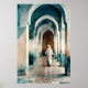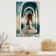 Hermoso callejón arquitectónico árabe y árabe en tonos azul y caqui.