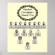 Un poster de árbol familiar presenta un título oval floral con fotos ovaladas y nombres de cuatro generaciones de una familia mostrados en un fondo de color crema. Las fotos, nombres y títulos se configuran para que sean personalizados con sus propias fotos, nombres y títulos.