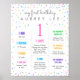 Celebra el hito con el primer cumpleaños de tu hija con este poster de color pastel salpicado de rosa, azul, verde, morado y naranja. El exterior del poster está decorado con helados como rociadores. Con los libros favoritos de su hijo, alimentos, juguetes, altura, peso, amor y más, seguro que apreciará a este poster en los próximos años. Fácil de editar y luciría como un marco increíble para su fiesta! (¡La edad también puede ser editada para las personas mayores!)