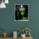 Un extraterrestre verde cómico exclama: "¡Creo que lo tengo!"
