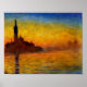 Una reproducción de "Twilight de Venecia" de Claude Monet de 1908. Esta impresionante obra maestra busca capturar el mágico sentimiento de la Reina del Adriático. El original se encuentra en el Museo de Arte Birdgestone de Tokio.