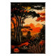 Sumérjase en la magia de una puesta de sol tropical. Colores vibrantes, siluetas misteriosas y la promesa de una noche exótica. Una obra que evoca el paraíso.