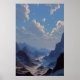 Póster Crescent Moon Over Misty Mountain Valley