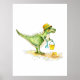 El bebé de Tyrannosaurus Rex con una cubeta de arena y un gorra en el edificio de vacaciones y el castillo