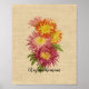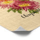El ilustracion botánico de época presenta un ramo de crisantemo rosa y naranja en el fondo de la mirada de burlap con un texto de escritura moderno superpuesto