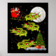Póster Crocodile Alligators Santa Sleigh Flying Funny Chr