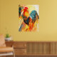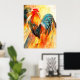 Levántate y brilla...¡el día empieza con el canto anunciador del gallo! Tema clásico para esta colorida y decorativa obra de arte. Colores brillantes con tiza en capas y pinceles acrílicos dispuestos con estampados y texturas sutiles forman este gallo anunciando un nuevo día. Un conjunto complejo para deleitar la vista y añadir dramatismo a cualquier decoración.
