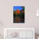 El Rock de la Catedral reflejando en el arroyo de roble hace de esta fotografía del Cruce del Rock Rojo al atardecer un éxito brillante. Esta vista está tomada del parque Crescent Moon y es un lugar típico para los bodas de Sedona. El resplandor del naranja es tan brillante que se toma una apariencia falsa en esta foto, sin embargo, esta no es una imagen falsificada o alterada. Si buscas una fotografía tradicional, puedes estar más feliz con uno de nuestros otros posters que tiene un color más creíble en las rocas.