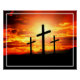 Póster Cruces, hojas de siluetas puestas al sol