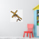 Una figura cristiana de palos con una corona de espinas lleva el Crucifijo. El diseño tiene la intención de mostrar cuidadosamente el mensaje de la Cruz de Pascua.
