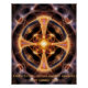 Diseño simétrico con elementos brillantes que se asemejan a un patrón de cruz o arranque. Aquí hay una descripción detallada: en el centro de la imagen, hay un punto brillante y radiante que emite tendrilos de luz en múltiples direcciones. La luz central es dorada y se extiende hacia afuera en una intrincada formación tipo web, que crea una forma simétrica que recuerda a una cruz o mandala. El diseño combina tonos naranjas y amarillos fuertes, que representan calor y energía, con acentos azules y blancos más fríos alrededor de los bordes, creando una sensación de equilibrio entre calidez y frialdad. Los filamentos de la luz dan la impresión de movimiento orgánico, fluido, casi como redes neuronales o ramificación de relámpagos, añadiendo un sentido de movimiento dinámico a la estructura, por lo demás estática. Hay nodos circulares de luz colocados simétricamente alrededor de la cruz, cada uno resplandece suavemente y contribuye a la sensación celeste, casi cósmica de la imagen. En general, la imagen evoca temas como la energía, la espiritualidad y el equilibrio cósmico, con una calidad mística y etérea al diseño abstracto. La mezcla de colores cálidos y fríos añade profundidad y contraste, realzando el impacto visual de la pieza.