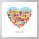 ¡Un pueblo alegre y colorido, en forma de corazón, lleno de alegría, amistad y mucho amor! Poster de formato cuadrado en una variedad de opciones de tamaño y papel. Un diseño sencillo y alegre, ideal para los niños o los chicas. También hay disponibles opciones de marcos de expertos. Hace una preciosa ducha de bebé o un regalo de cumpleaños... dulce.