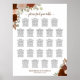 Esta tabla de asientos de 23 bodas de mesa presenta un bonito diseño floral otoñal con rosas acuáticos pintados a mano en tonos de naranja de óxido, número quemado y melocotón de coral. Hay brotes de hojas de eucalipto y follaje de otoño que completan el diseño de la moda boho. El acondicionamiento tradicional tiene capacidad para 230 comensales, con 10 asientos por mesa y un elegante título de caligrafía con un guión elegante que dice "por favor, encuentra tu mesa", y espacio para los nombres de la pareja y la fecha boda en la parte inferior. Una forma maravillosa de añadir belleza y estilo a la recepción de tu boda, al mismo tiempo que facilita a tus huéspedes la búsqueda de sus asientos.