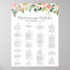 Póster Cuadro de asientos alfabéticos de flores rosadas y