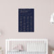Este romántico poster de la gráfica alfabética de caligrafía marina es perfecto para un boda simple. Este signo se puede usar para organizar a los invitados alfabéticamente o por número de tabla. El moderno diseño clásico presenta vistosos remolinos y florituras con una preciosa y elegante tipografía de Relieve metalizado de oro con chaflán a mano con letras falsas y oro. Este poster boda tiene capacidad para 120 personas. Haga espacio para más (o menos) invitados haciendo clic en el botón "personalizar" y disminuya o aumente el tamaño del tipo de letra. Además de la ubicación de cada invitado, personalice este cartel con los nombres de la novia y el novio y la fecha del boda. Nota: Este diseño no tiene Relieve metalizado oro real. Es un gráfico de alta calidad hecho para parecer un Relieve metalizado dorado.