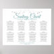 Haz que tu recepción de bodas sea hermosa con esta tabla de asientos. Diseñado como parte de nuestra suite de bodas Verde azulada y gris elegante, ofrece un diseño sencillo y elegante con texto verde azulado o turquesa y gris sobre un fondo blanco con un borde floral de imitación de Relieve metalizado plateado. Este gráfico muestra las asignaciones de tablas para que sus invitados tengan facilidad para encontrar la tabla correcta.