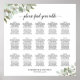 Este cuadro de 15 asientos de boda de mesa presenta un diseño de acuarela rústico pintado a mano con estribos de hojas de eucalipto, vegetación y follaje en tonos de salvia y verde musgo. El elegante título de caligrafía del guión dice: Por favor, encuentre su tabla, y los nombres de la pareja y la fecha del boda aparecen en la parte inferior. Una forma maravillosa de ayudar a sus huéspedes a encontrar sus asientos, añadiendo elegancia y estilo a su recepción. Incluye asientos para 150 comensales con los 10 asientos tradicionales por mesa.