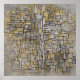 Tableau No. 2/Composition No. VII de Piet Mondrian es una pieza vintage de cubismo abstracto que presenta líneas negras entrelazadas y planos de color en tonos ocre y gris.
