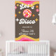 Presentamos nuestro Retro Groovy 70s Let's Disco Birthday Party poster de bienvenida! Entre en la máquina del tiempo y lleve a sus huéspedes de vuelta a la fabulosa época de los fondos de campana, las melodías divertidas y todo tipo de cosas. Este deslumbrante poster, adornado con vibrantes gráficas de bola de disco, crea el ambiente perfecto para una noche de boogie-ing. ¡Colóquelo en la entrada y observe cómo sus fiestas entran en la discoteca desde el momento en que llegan!