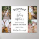 Bienvenidos a una celebración de despedida de soltera con estilo con un elegante cartel personalizado de 4 fotos en collage de 18"x24". Las imágenes y todo el texto son fáciles de personalizar. El tema de la fiesta "brunch & bubbly" se puede eliminar fácilmente o cambiar a otra idea como backyard bliss, garden tea party, french boho chic, Miss to Mrs, Paris romance, etc. El diseño moderno minimalista en negro y blanco presenta cuatro imágenes de su elección, un estilo de caligrafía manuscrita chic y tipografía vintage inspirada en art déco. Este letrero de bienvenida para la fiesta de boda es una forma elegante de compartir fotos de compromiso como parte de las decoraciones de celebración de su día especial. ¡Felicidades a la novia!