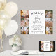Bienvenidos a una celebración de despedida de soltera con estilo con un elegante cartel de collage de 6 fotos personalizadas de 18 "x24". Las imágenes y todo el texto son fáciles de personalizar. El tema de la fiesta "brunch & bubbly" se puede eliminar fácilmente o cambiar a otra idea como backyard bliss, garden tea party, french boho chic, Miss to Mrs, Paris romance, etc. (CONSEJO DE COLOCACIÓN DE IMAGEN: Una forma fácil de centrar una foto exactamente como la desea es recortarla antes de subirla al sitio web de Zazzle). El diseño moderno minimalista en blanco y negro presenta seis imágenes de su elección, caligrafía con estilo de escritura a mano chic y tipografía vintage inspirada en art déco. Este letrero de bienvenida para la despedida de soltera es una forma elegante de compartir fotos de compromiso como parte de las decoraciones de celebración