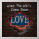 Este diseño captura una poderosa metáfora para revelar una verdad oculta. Cuenta con una pared de ladrillos acristalada con una abertura encajonada, a través de la cual un cartel con la palabra "AMOR" es parcialmente visible. El cartel tiene un estilo limpio y atrevido con un resplandor cálido y rojo. La frase "Cuando las paredes se caen" está escrita con un ligero estilo de graffiti en el ladrillo, simbolizando el momento en que escogemos revelar lo que se ha ocultado.