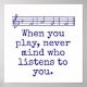 La música tiene fuerza en la vida de muchas personas. Muestre su apreciación con esta cita temática musical: Cuando toques, no importa quién te escuche. Un gran regalo para ese músico en tu vida.