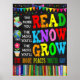 ¡CUANTO MÁS LEAS MÁS CONOCE AL POSTER DE LA BIBLIOTECA DE AULAS Fabuloso, hermoso y motivacional poster para decorar cualquier salón de clases o biblioteca escolar! El diseño presenta colores y gráficos brillantes y llamativos en un marco de pizarra falso. ¡Alentar a los estudiantes a leer, saber, crecer y a ir con este divertido poster de lectura inspirador!