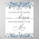 Adivina cuántos besos para la señora pronto letrero con un borde de flores azules. Colección coincidente en la tienda Adore Paper Co. Zazzle.