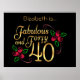 Cuarenta y fabuloso oro y negro con poster de cumpleaños de las mujeres de Roses Rojas. Agregue el nombre de los destinatarios para hacerlo personal. ¡Una gran adición a la fiesta de cumpleaños!